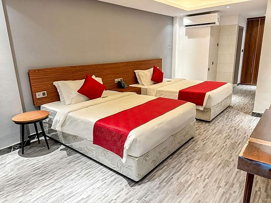 Providing free toiletries and bathrobes, this twin room includes a private bathroom with a bath, a shower and a hairdryer. The twin room's kitchenette is available for cooking and storing food. The spacious air-conditioned twin room provides a flat-screen TV with cable channels, a private entrance, a mini-bar, a tea and coffee maker as well as city views. The unit offers 2 beds.
